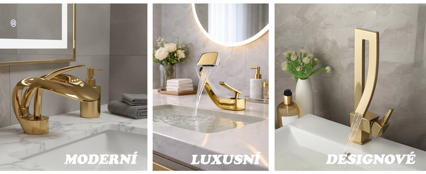 Umyvadlová stojánková vodovodní baterie stojánková S-MT-N1 ve zlatém matu.