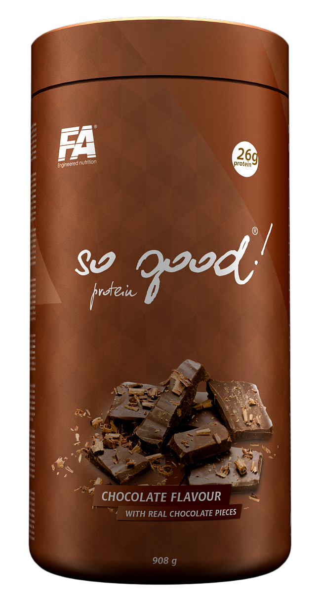 FA So Good Protein ® je proteinový doplněk stravy vyrobený ze syrovátkové bílkoviny a doplněn o kousky ovoce, čokolády nebo vanilky. Tyto kousky byly získány speciální metodou vakuového vymrazování (lyofilizace), aby se zachovala jejich co nejvyšší výživová hodnota.