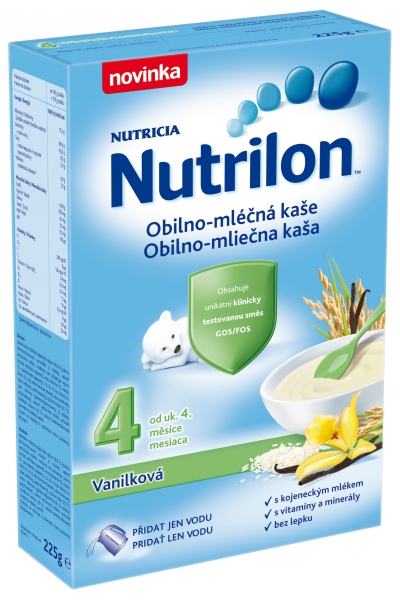 Nutrilon kaše jsou vhodné začít podávat v době, kdy dítěti už mateřské nebo kojenecké mléko nedostačuje ( dodává mu málo živin ) a proto je nutno část mléčné výživy nahradit příkrmy. Nutrilon mléčné kaše dítě nejen zasytí díky obsahu obilovin, ale obsažené kojenecké mléko též usnadní přechod od mléka k příkrmům. Nutrilon kaše obsahuji dále vitamíny a minerály ( železo a vápník ) důležité pro správný vývoj dítěte.
