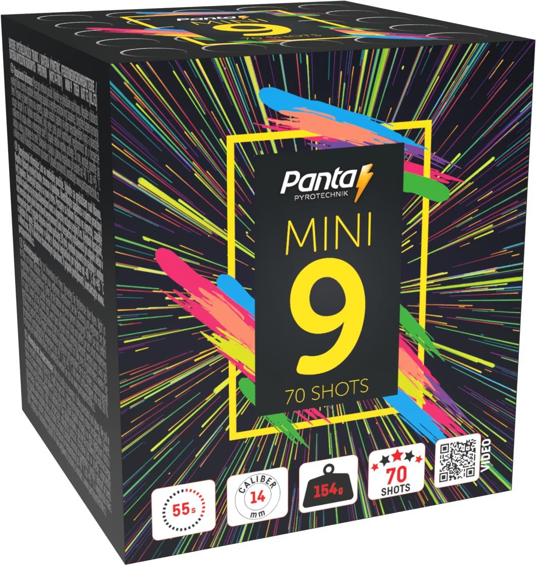 Ohňostrojový kompakt MINI 9 má tvar kvádru. Uvnitř kompaktu jsou uloženy trubice s jednotlivými ranami.