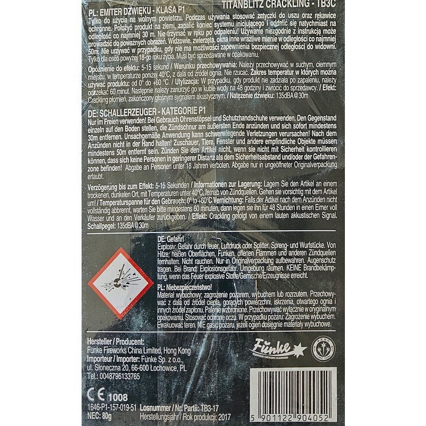Parametry produktu Petardy Titanblitz3 crackling 20ks