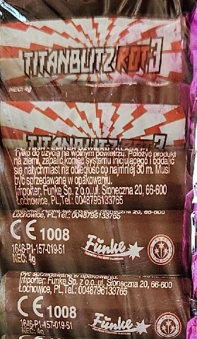 Petarda Titanblitz3 se zapaluje pomoci knotu na petardě.