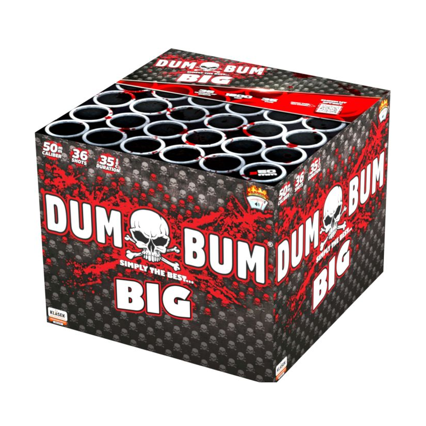 Ohňostrojový kompakt DumBum má tvar krychle. Uvnitř kompaktu jsou uloženy trubice s jednotlivými ranami.