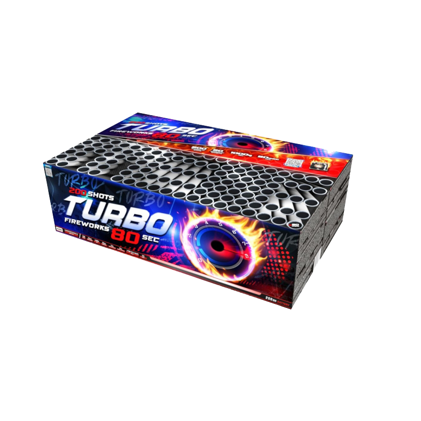 Ohňostrojový kompakt Turbo má tvar krychle. Uvnitř kompaktu jsou uloženy trubice s jednotlivými ranami.