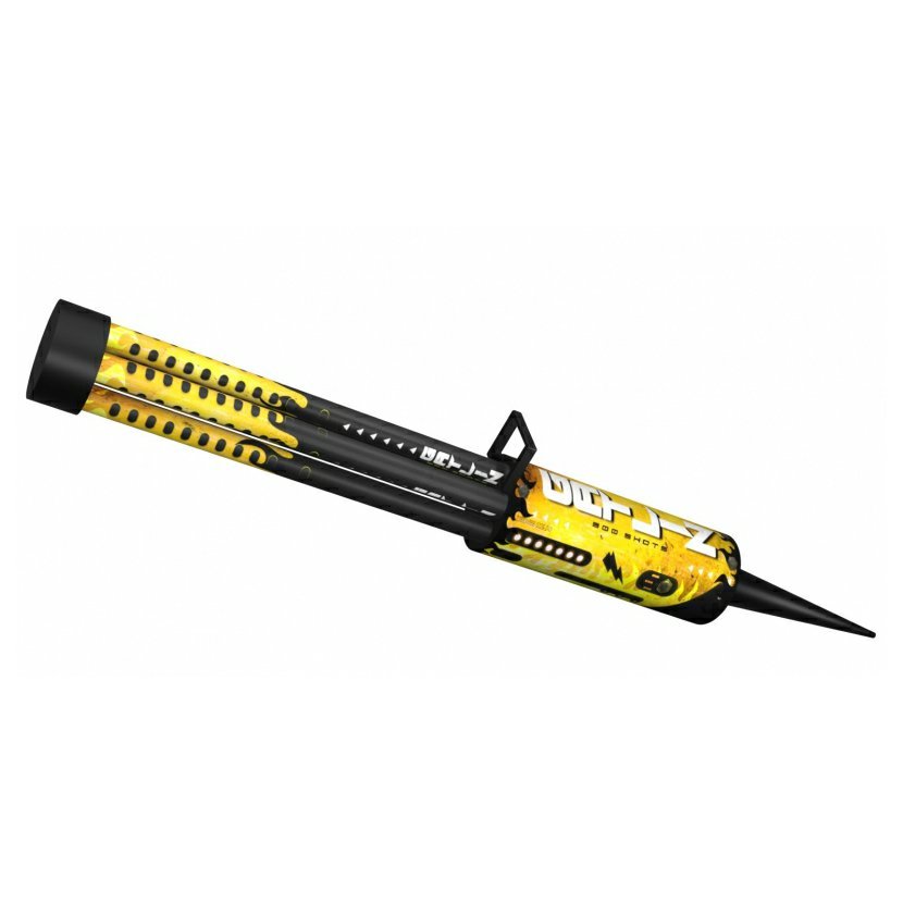 Sada svíci Gatlin 300 v balení jako kulomet - Svíce mají tvar podlouhlého tenkého válce. Po upevnění římské svícezačnou do výšky 10 až 15 metrů vystřelovat různobarevné světlice.
