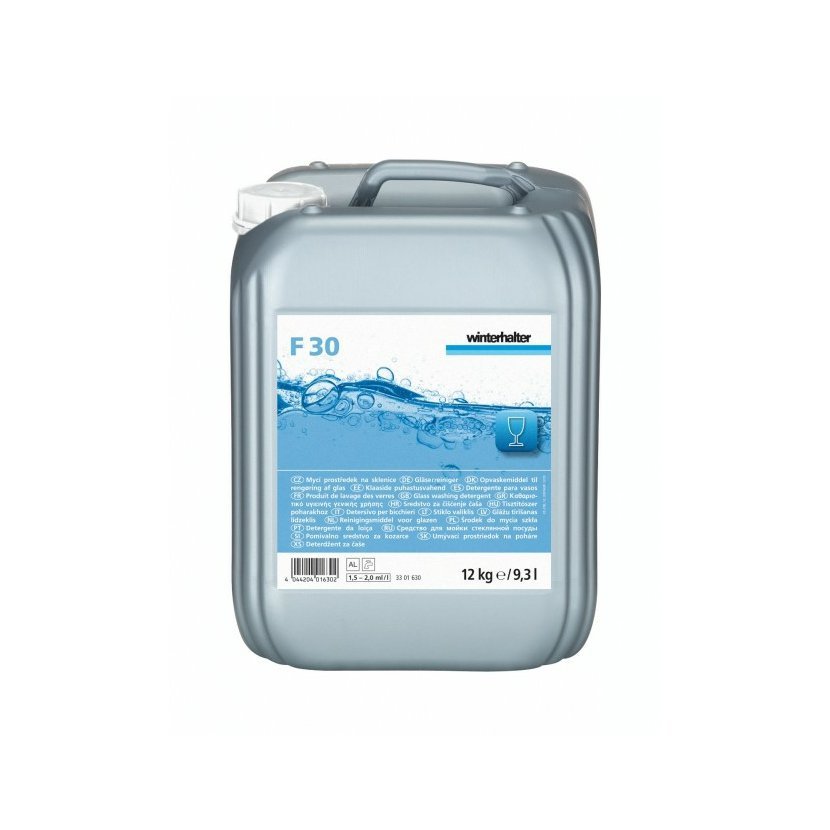Pro dosažení optimálních mycích výsledků doporučujeme používat Winterhalter F 30 ve Winterhalter mycích strojích na sklo společně s oplachovým prostředkem Winterhalter B 100 N a doporučeným zařízením na úpravu vody. Pro kvalitně umyté sklenky bez šmouh a nečistot je vhodné využít některých z postupů pro úpravu vody (částečné či úplné odsolení nebo reverzní osmóza RoMatik. Při použití přívodní vody s reziduální tvrdostí je vhodné kombinovat mycí prostředek Winterhalter F 30 s oplachovým prostředkem Winterhalter B 200 S .